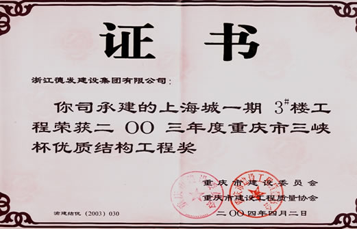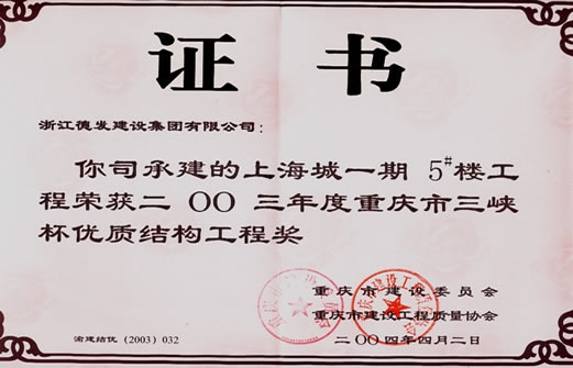 2003年一期三棟三峽杯優(yōu)質(zhì)結(jié)構(gòu)工程獎(jiǎng)