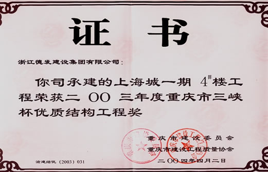 2003年一期四棟三峽杯優(yōu)質(zhì)結(jié)構(gòu)工程獎(jiǎng)