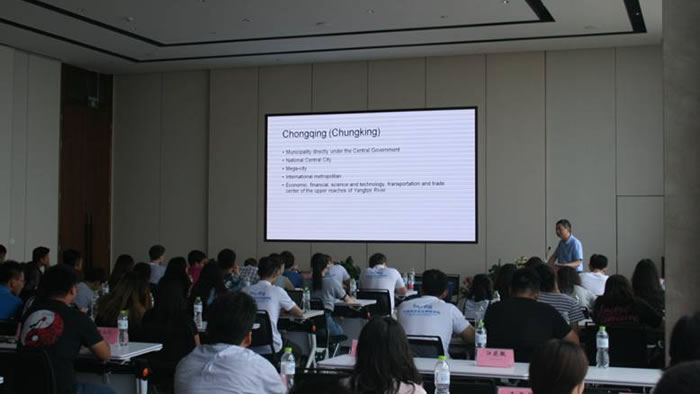 之后師生們繼續(xù)學(xué)習(xí)聆聽了重慶市教育國(guó)際交流協(xié)會(huì)秘書長(zhǎng)樂(lè)勇主持的《重慶社會(huì)經(jīng)濟(jì)發(fā)展概況專家講座》,氣氛熱烈,筆耕之聲不絕于耳。
